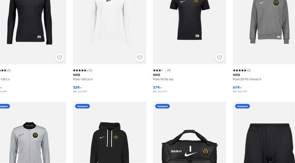 Produkterna i shoppen har valts för att möta klubbens behov vid träning, tävling och vardag – hög kvalitet på textilier och material, tydlig klubbprofil och logga, samt valmöjligheter vad gäller storlek och personifiering.